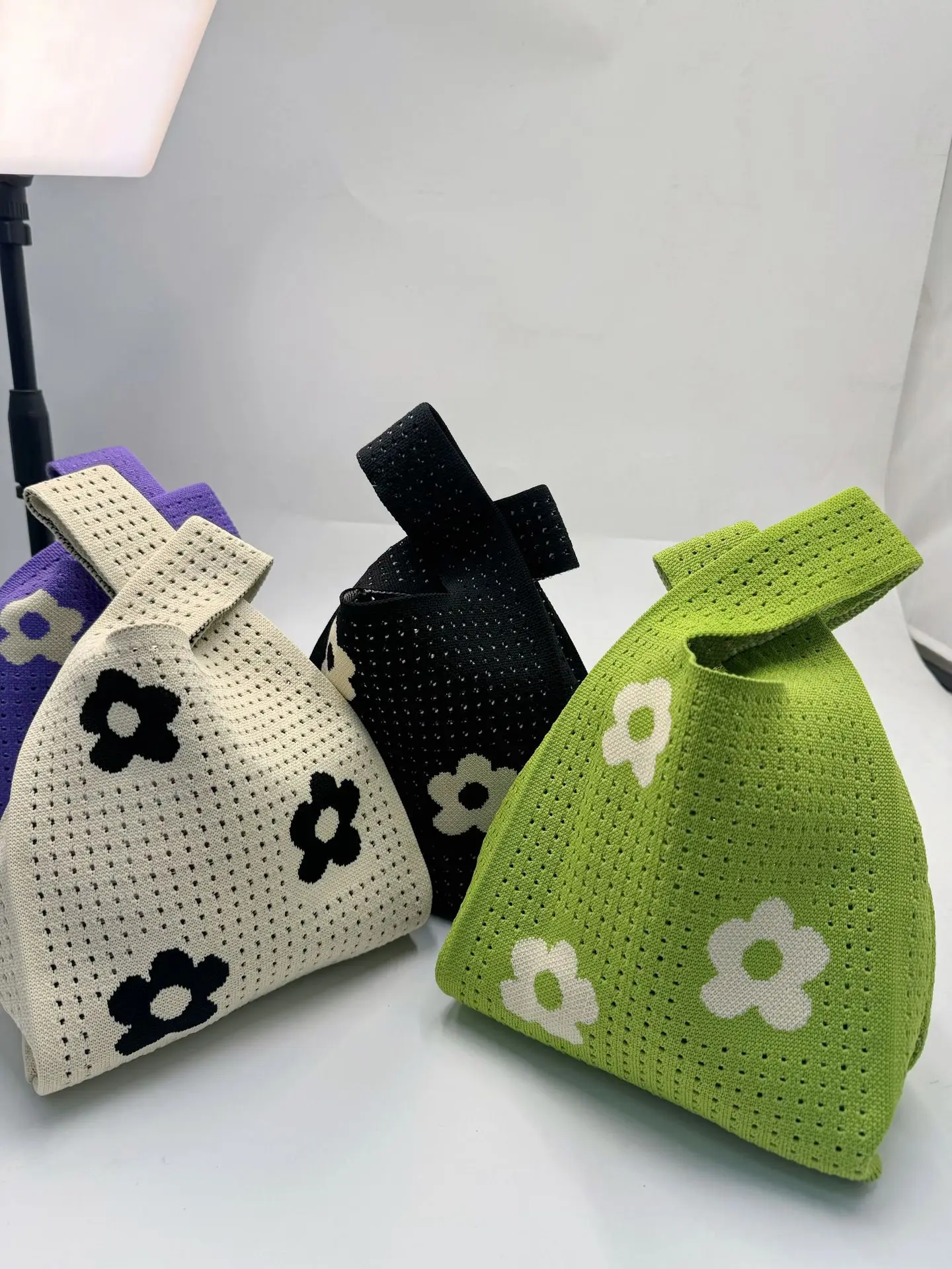Tote Bag Handmade Knit Handbag Women Mini Knot Wrist Bag