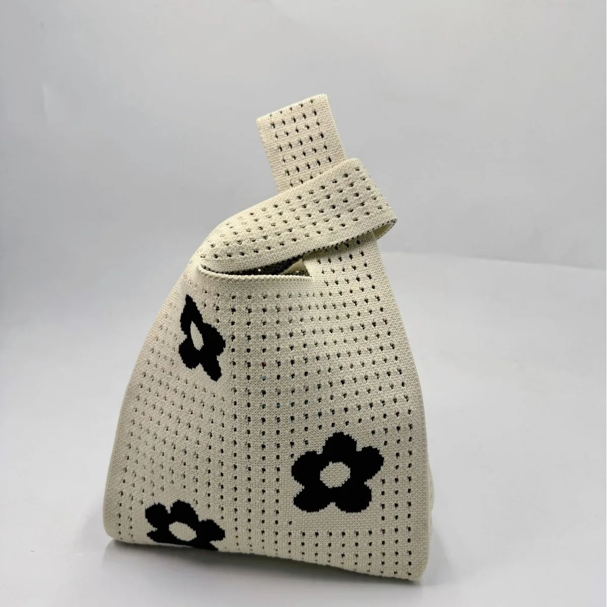 Tote Bag Handmade Knit Handbag Women Mini Knot Wrist Bag
